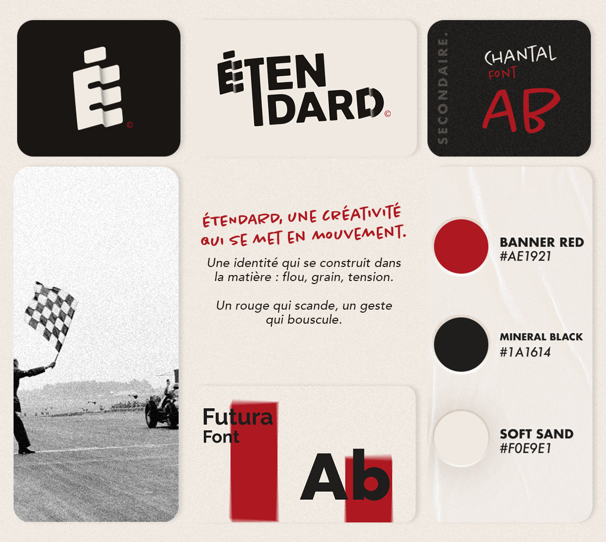 Compréhension & positionnementAnalyse des valeurs d’Étendard, de leur vision créative et de leur volonté d’associer élégance, rupture et éco-conception.