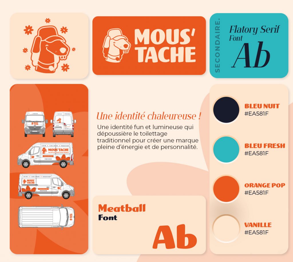 Construction de l'identité Construction du nom, de l’ambiance visuelle, des couleurs et du ton global afin de traduire sa bienveillance et sa proximité.