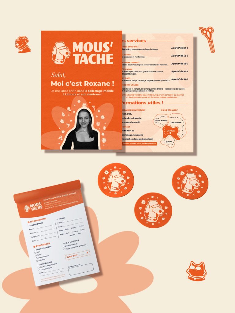 RECHERCHE & CADRAGEImmersion totale dans la personnalité de la cliente, Roxane : ses valeurs, son humour, son approche du toilettage, et ce qu’elle voulait transmettre.